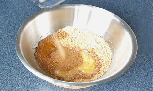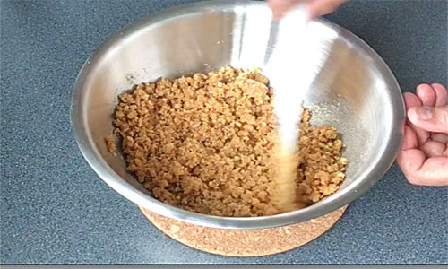 Melt the butter and pour over the crumbs.