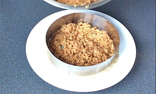Pour the crumbs into the centre of the cake ring.