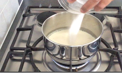 Pour the rest of the cream in a saucepan; warm the cream slightly then sprinkle agar powder.