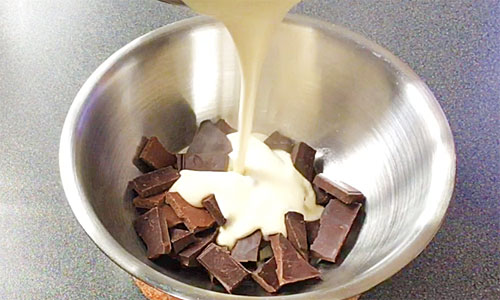 Pour the cream directly over the chocolate pieces, let it sit for about a minute to soften.