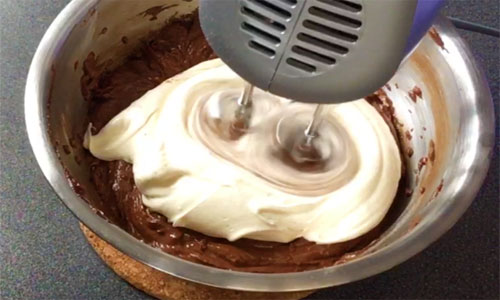 To finalise drop the whipped cream and mix well, until it reaches a silky consistency