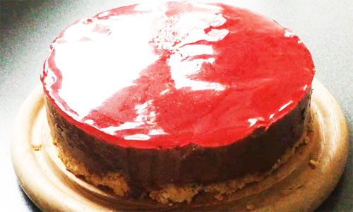 CHOCOLATE MOUSSE CHEESECAKE TOPPED WITH CHERRY GLAZE